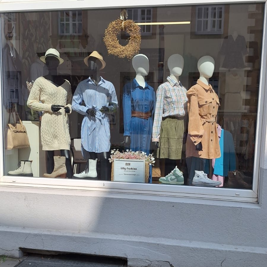 Ob lässige Alltagsoutfits oder elegante Abendkleider – in unserem Shop ist für jeden Geschmack etwas dabei. Jeder Artikel hat seine eigene Geschichte und wartet darauf, von Ihnen neu entdeckt zu werden. Kommen Sie vorbei und lassen Sie sich von der Vielfalt unserer Kollektion inspirieren. Wir freuen uns auf Ihren Besuch bei Lilly Fashion!