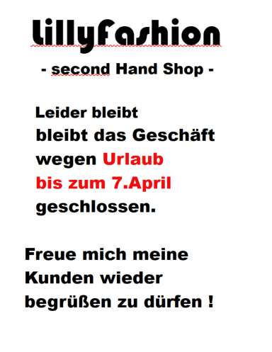 Lilly Fashion - second hand Shop aus Liebe mit Sorgfalt und der Nachhaltigkeit unserer Zukunft. Alle Kleidungsstücke sind gewaschen und mit viel Liebe für meine Kunden ausgesucht.